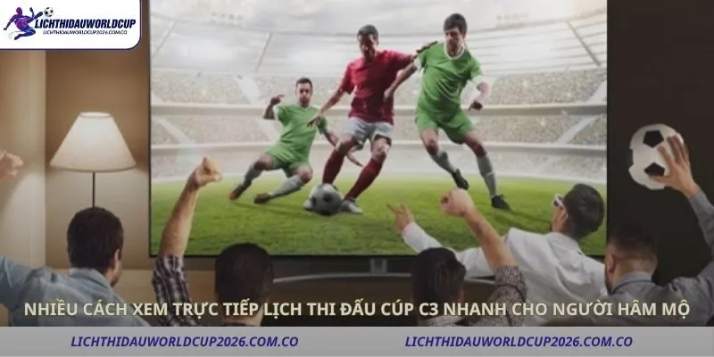 Nhiều đài truyền hình quốc tế và trong nước phát sóng trực tiếp các trận cúp C3. Thông qua các kênh này, người hâm mộ có thể theo dõi lịch thi đấu, giờ bóng lăn và các phân tích trước trận. Đây là lựa chọn quen thuộc, đặc biệt với những ai muốn trải nghiệm bóng đá chất lượng cao với bình luận chuyên nghiệp.